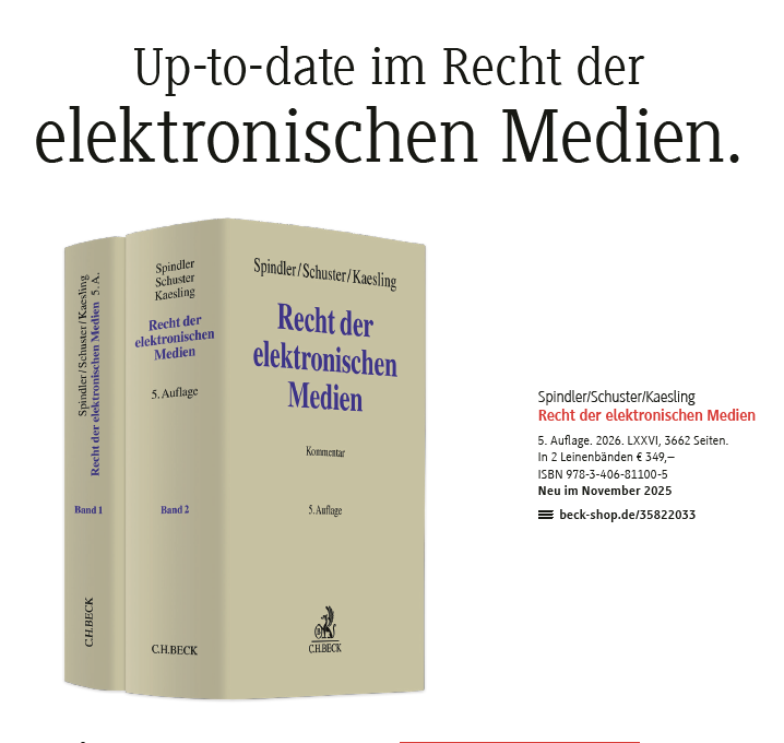 Ganz aktuell ist die neueste Auflage des bekannten Kommentars “Das Recht der elektronischen Medien” erschienen. Herausgegeben wird es von Spindler/Schuster/Kaesling, wobei der erstgfenannte Herausgeber leider zu früh vor nicht langer Zeit verstorben ist. Das Werk ist bereits seit vielen Jahren als Standard etabliert.